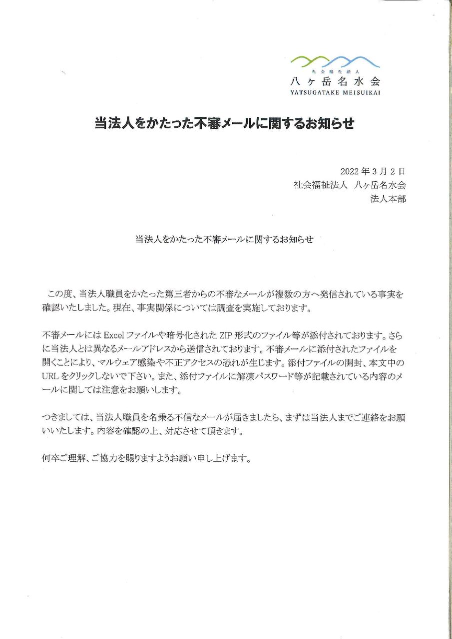 TEL: 0551-45-7027 FAX: 0551-32-6351 MAIL: yan@y-meisui.or.jp