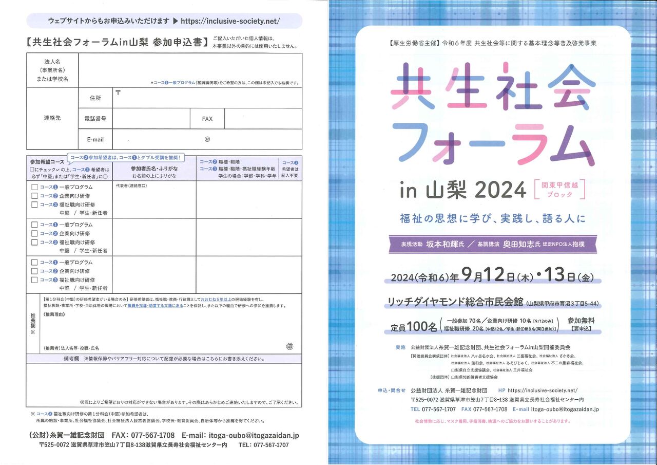 本年度関東・甲信ブロックで行われるイベントは埼玉県秩父市、山梨県内2か所で開催され、山梨県が共催、当法人も構成団体の一員として関わっております。
