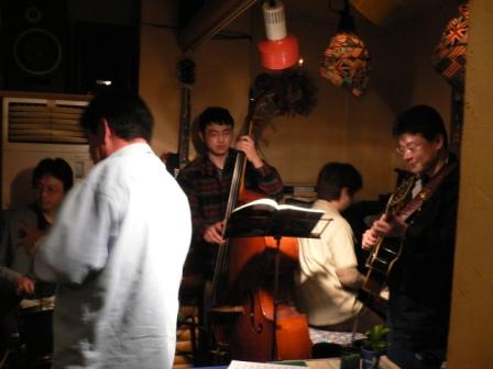 隣りのテーブルに、OL風の方が2人〜 なんでも、4年前のスイートベイジル(マリーンvo)で、初めて観た以来の岡安さんだそうな〜 「その時って、僕がスペイン演った時〜!?」って岡安さん(笑)