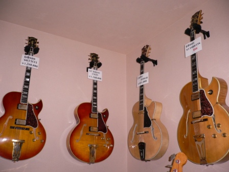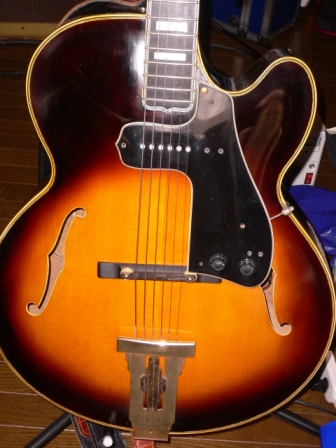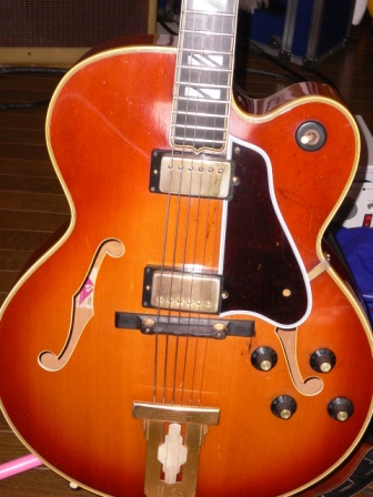 このL5CES custum 、製造年が明確ではないが、多分74−5年あたりみたい。L5のボディーを持ち、S400のネック。スーパーVの原型になったギターだそうです。そういうことで、こちらは本当にcustum!よん〜