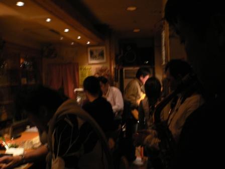 セッションが始まる前に、お店に到着したんだが、既にいっぱい〜! お店に入れない10人位が、外で飲んでいたりして、ホント大盛況だった。(私もその一人だったが)30人以上来てたかな〜 しかも、ほとんどミュージシャン〜!