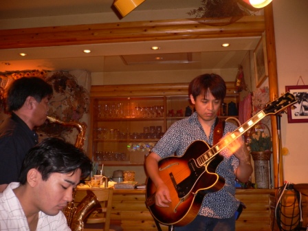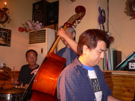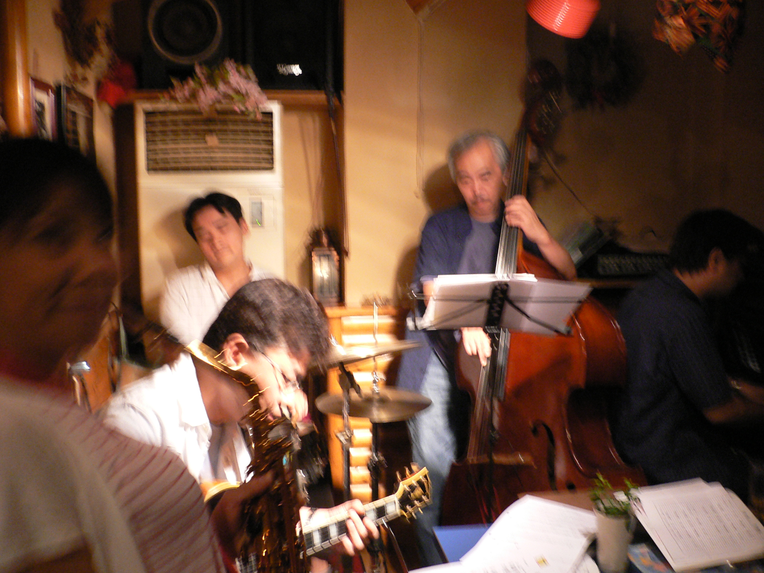 この日のベースキャンプは、お盆休みに入ったせいか? お客さんがいつもより少なく、おかげでいつもより、いっぱい弾けました。(喜) 只、10時過ぎに眠くなり、眠気との闘い〜 終始無口に〜(笑) 肝心のセッションは、結構楽しく出来ました〜 みなさん有難うございます〜懲りずに又よろしく〜(笑) 画像は休み明けにアップしやす〜 だって、会社のPCから書き込んでいるので(笑)...しかし、携帯から入れるの 難儀やなぁ〜