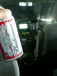 と、いうことで、今、車中でビールを飲んでおりやす〜(笑)...運転4時間前まではヘベレケかも〜? でも、試合始まって、途中でトイレ行きたくないし〜...何度も行ってると、知恵がつくなぁ〜