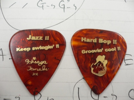 所謂、オリジナルピックなので、デザイン、形、厚さ を選んで発注〜