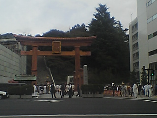 信号待ちしていたら、日本古来の伝統行事風景をバックに