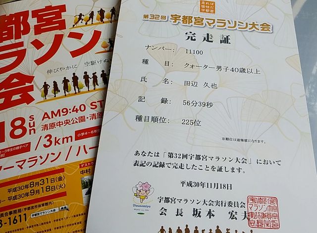 毎年恒例 宇都宮マラソン大会 今年も走りました クォーター