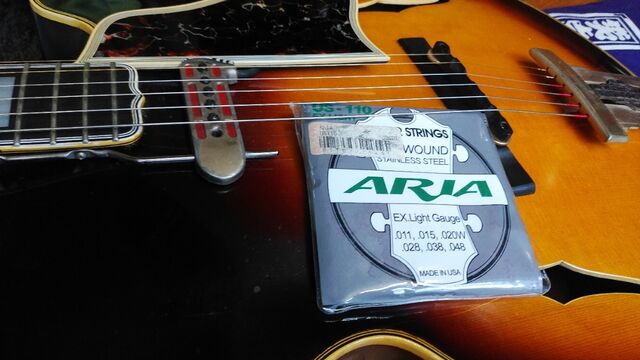 有難いことに 他県 ギタリストの方から 数セット アリア弦譲って頂きました。