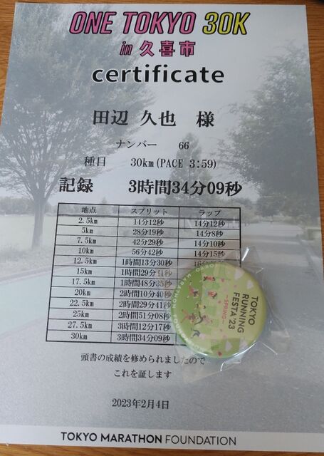 偶々東京マラソン大会に向けた練習会30キロ走開催! 見つけた。