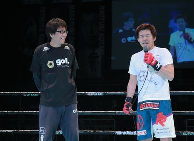 ――試合後には、セコンドについた『キャプテン翼』の作者な高橋陽一先生をリングに呼びこみました。そして、なぜか伊藤選手がインタビュアーになって高橋先生に感想を聞くという(笑)。