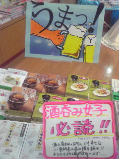 まず、ビールの絵で「んっ?」と思い、さらに近づくと「酒呑み女子必読」というポップが。