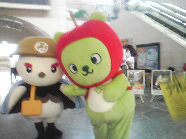 りんごをかぶったアルクマと、なび助というキャラが大人気。