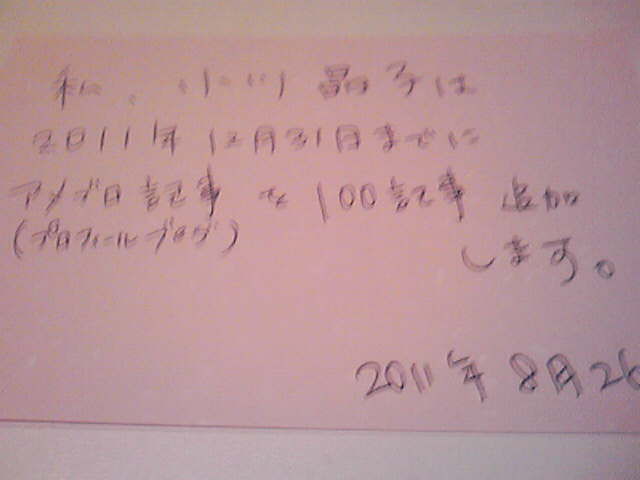*見えずらいけど、「私、小川晶子は2011年12月31日までにアメブロ記事を100記事追加します」と書いています。