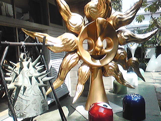 夏の光がさしこむ庭に、所狭しと並ぶアート。