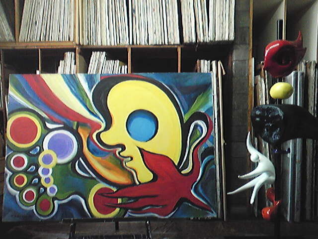画材とキャンバスがたくさん置いてあります。古ぼけたピアノも傍らにありました。
