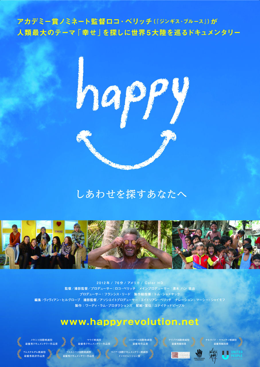 『happy』は5大陸16か国を巡る4年間のロケを敢行し、心理学や脳医学の世界的権威と幸福度を高める鍵を読み解くドキュメンタリー映画です。