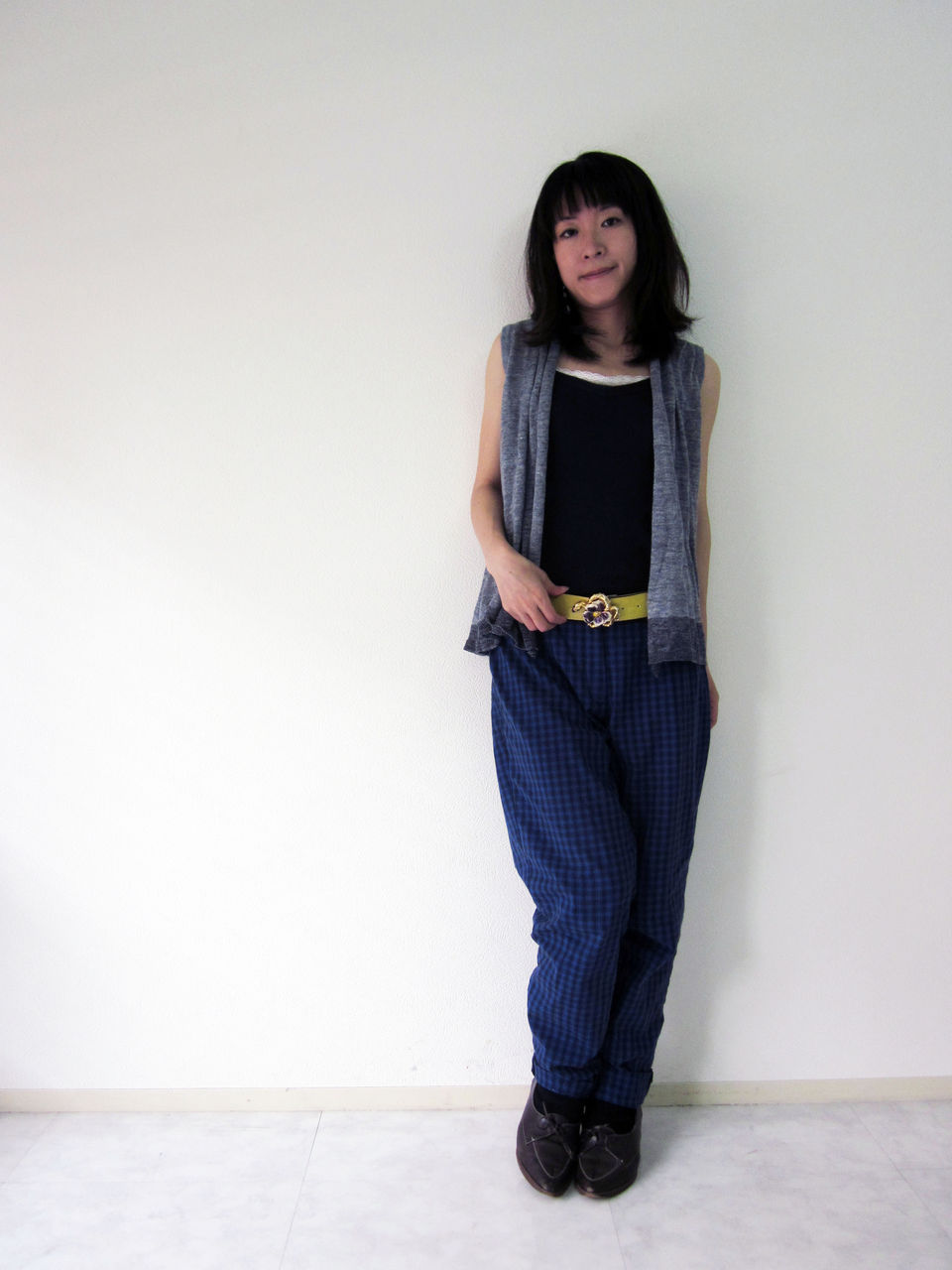 コーディネートを考えるときは、いつもこの靴下がネックです...。素足にサンダルなら、もっと大人っぽくなるのになー、もっとバランス良くなるのになーと思いながらも、そんな制限も楽しむべくやっております。