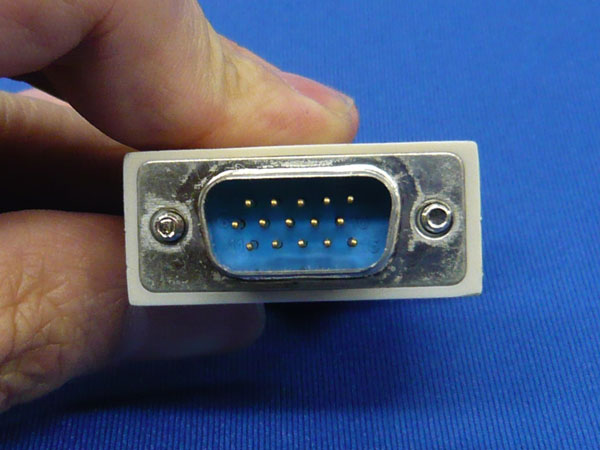 で、このアダプタ。形をよく見ると9Pinにメスネジが、15Pinにオスネジが付いています。