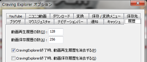 対応サイトの動画ページを開いた際、保存した際にその履歴を記録し、メニューから参照できるようになりました。この機能は Craving Explorer オプション画面にて設定が可能です。保存した履歴情報はローカルでのみ使用されます。(開発者が履歴を取得することはありません。)