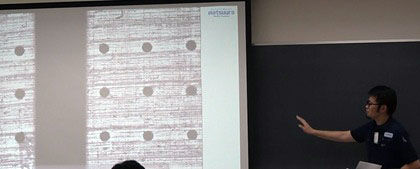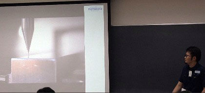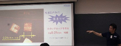 製作物のサンプルとして1辺0.24mmの純銅製のブロックの加工物の写真を見せていただけました。色川氏もお話しされていましたが、「どうやって固定するのだろう?」と純粋に思いました。この辺は企業のノウハウなので " 秘密 " なのが当たり前ですよねぇ。