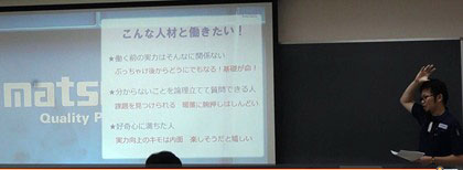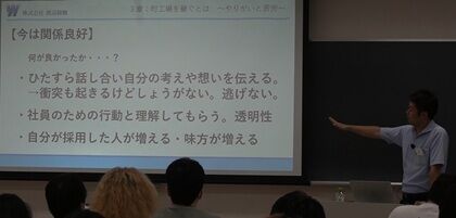 学生の中にも実家が工場をやっている学生が結構な人数いるので、演題として「町工場を継ぐという選択肢」をお願いしたのですが、最後に【次期後継者のかたへ伝えたいこと】として