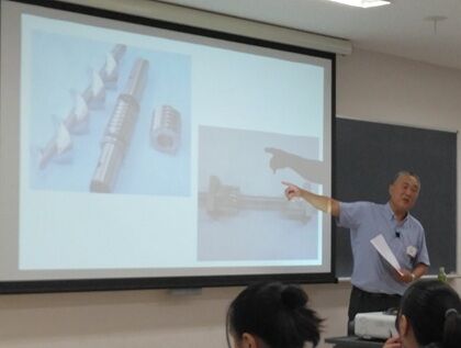 実際にボールねじのサンプルを持ってきていただけたので、学生はその精密でスムーズな動きに感心していました。