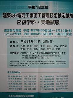 11月12日(日)に「2級建築施工管理技術検定試験」があります。在学中に「学科試験のみ」受験することが可能です。ただ今、学内にて願書受付中です。夏休み明けから、資格対策の授業や放課後ゼミが始まります。合格を目指して、頑張りましょう