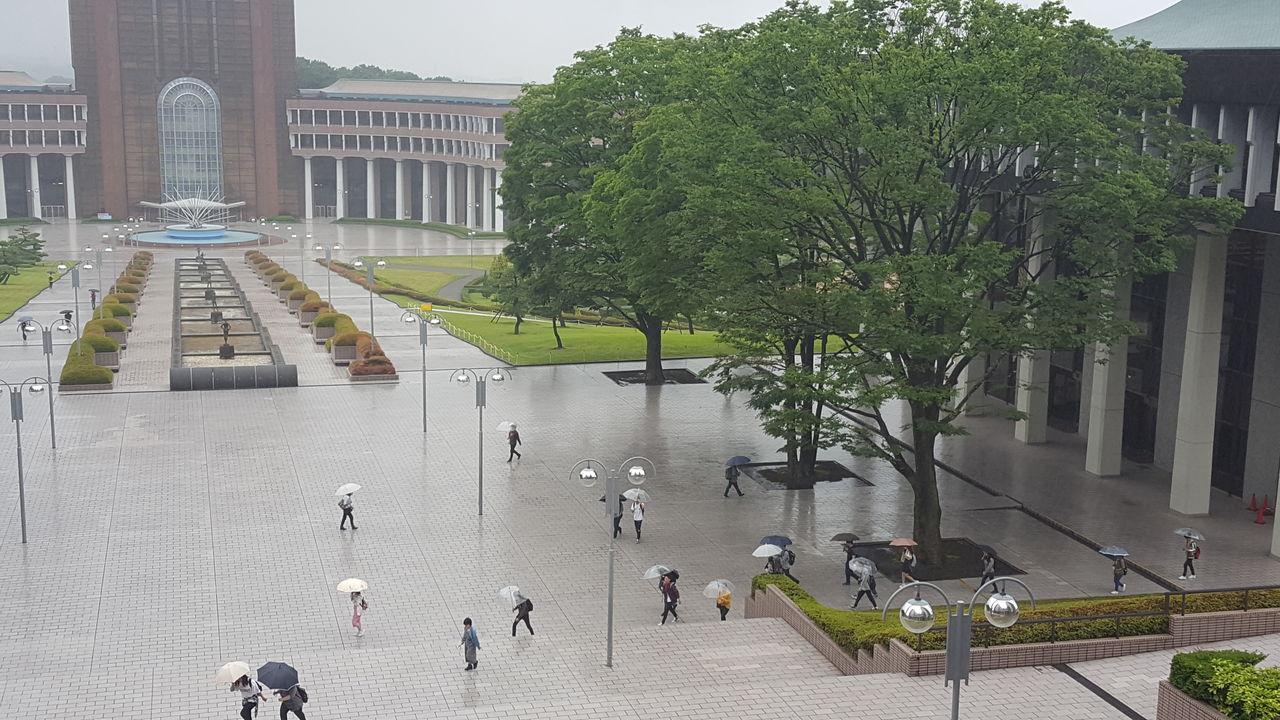 今日は夏至です。梅雨入り宣言があってから長いこと雨が降っていませんが、本日は朝から傘の花が咲いています。八王子校の水曜日は建築施工実習(選択)がありますが、建て方実習はものづくり工房で行っているので雨の心配がありません。(担当:123)20170621_100900