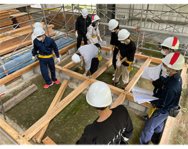 建築の授業の一環で、木造の小屋を自分たちで作る授業を実施しています。
