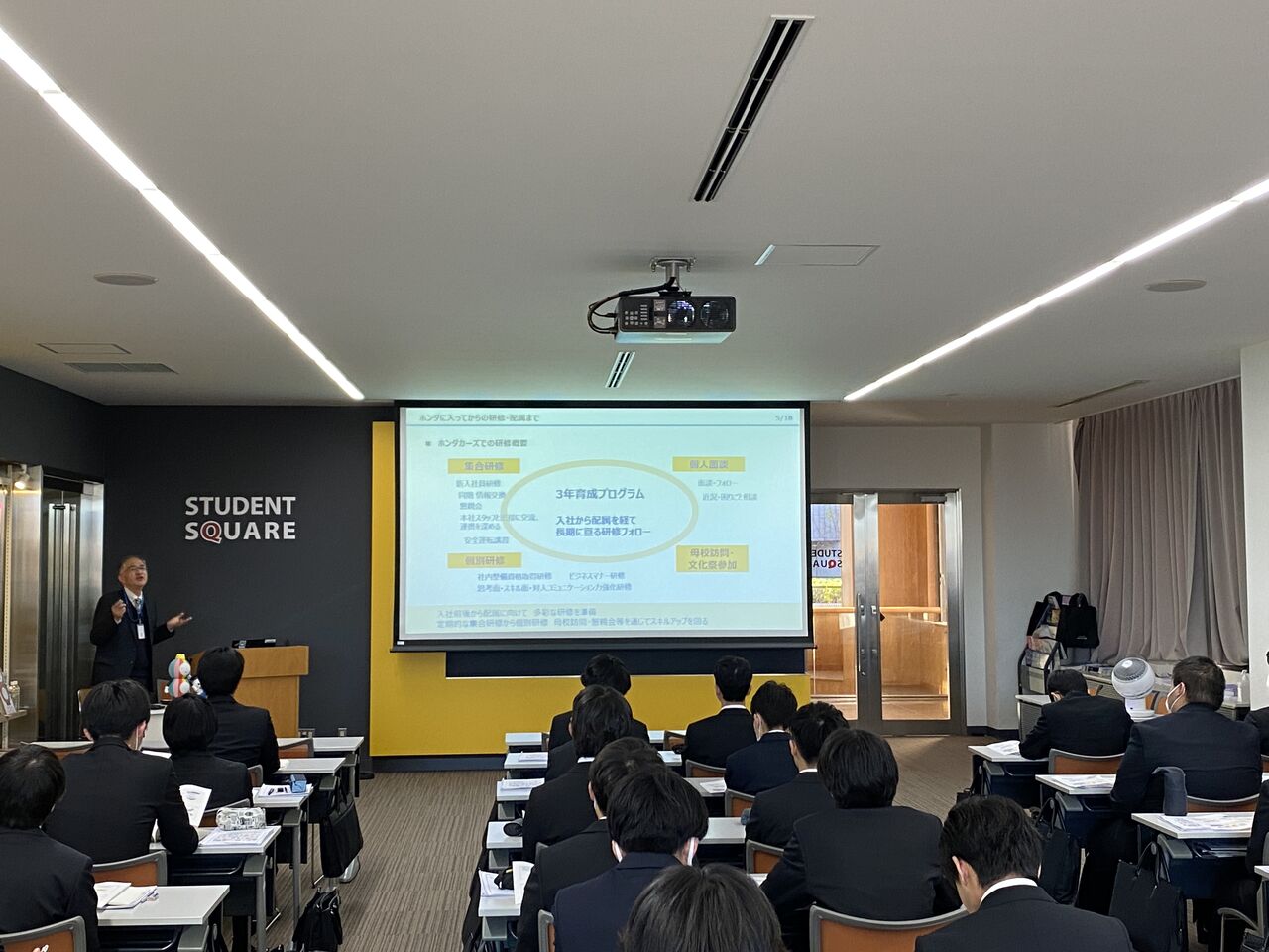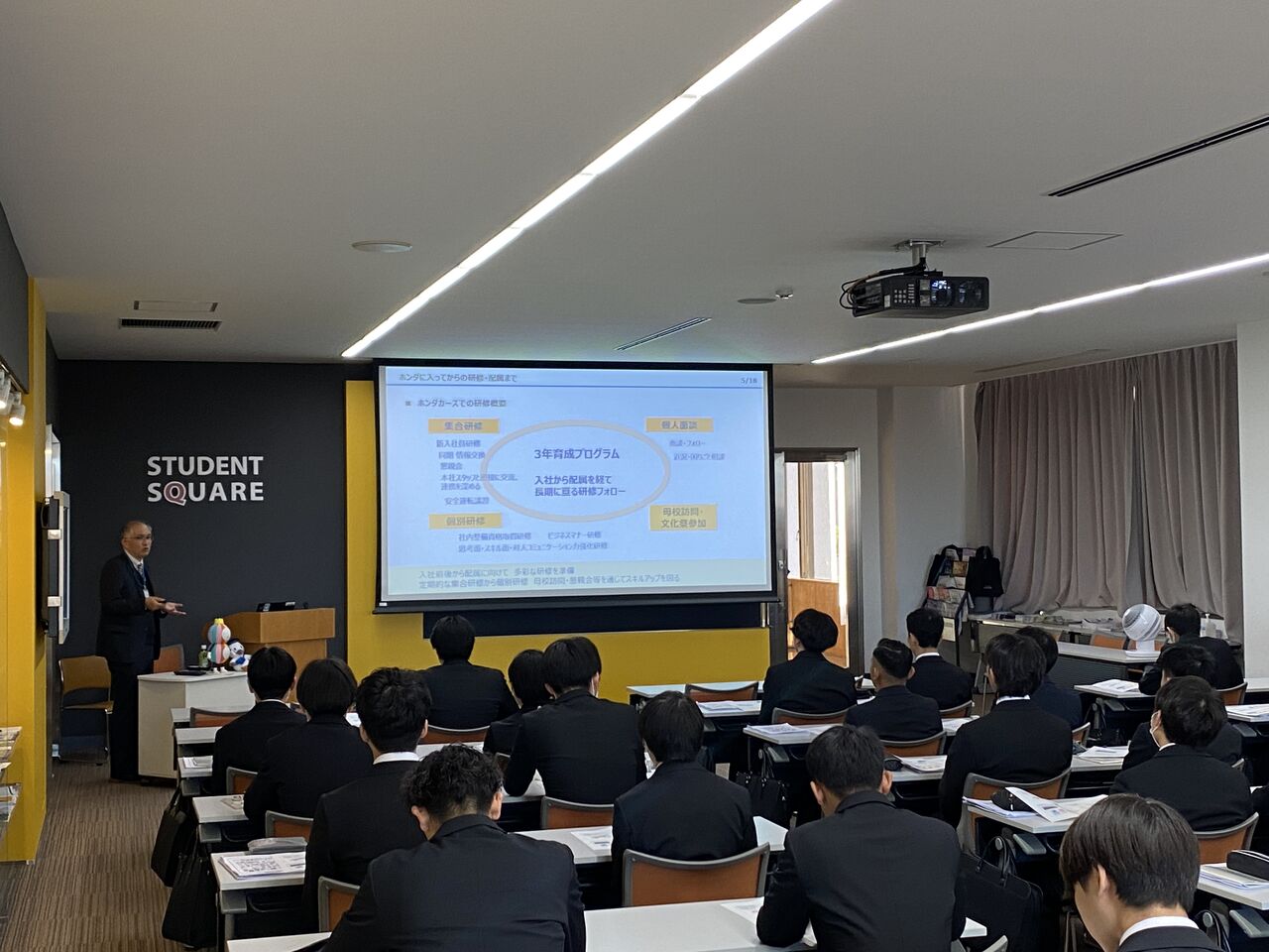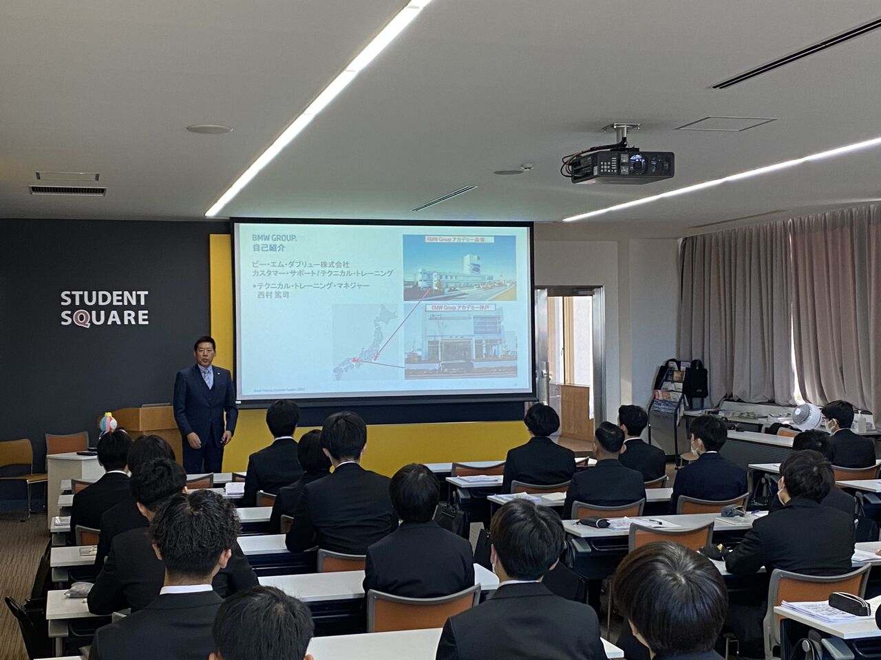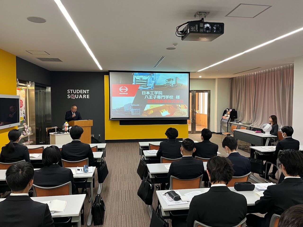 日本工学院八王子専門学校 一級自動車整備科/自動車整備科では、学科開設以来学生のミライのために、日本の自動車メーカー全てのお話しを聴く機会を設けています。これにより、学生は自動車業界の知識や考え方を学び、自身の就職(販売店選び)へと繋がることを目的としています。