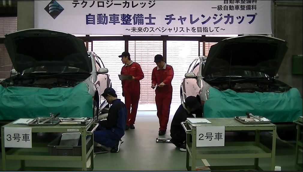 その他にも紅華祭ではあちらこちらで様々なイベントが行われ、私たち自動車整備科、一級自動車整備科では学生たちの日ごろの勉強成果を発表する教育成果発表の場として「第一回自動車整備士チャレンジカップ 未来のスペシャリストを目指して」を開催しました。