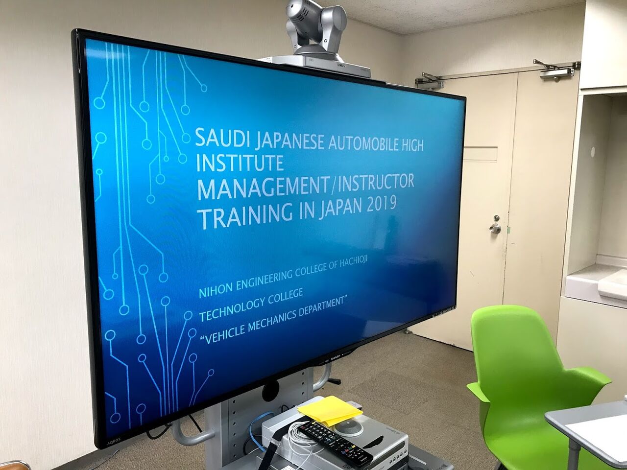 まずは日本の自動車業界の現状、専門学校の現状、日本人学生の現状などを共有し、サウジも日本とあまり変わらないという事が分かりました。また、本校のシラバスや試験の方法や評価基準など非常に興味を持って貪欲に質問されており、SJAHIの意識の高さが際立っていました。われわれもそれに負けないような教育を行い、グローバルでダイバーシティな学生を創造していかなければならない事を痛感する研修で、また、日本人の英語能力の低さも痛感し、もっとスキルアップを行う必要性も感じました。