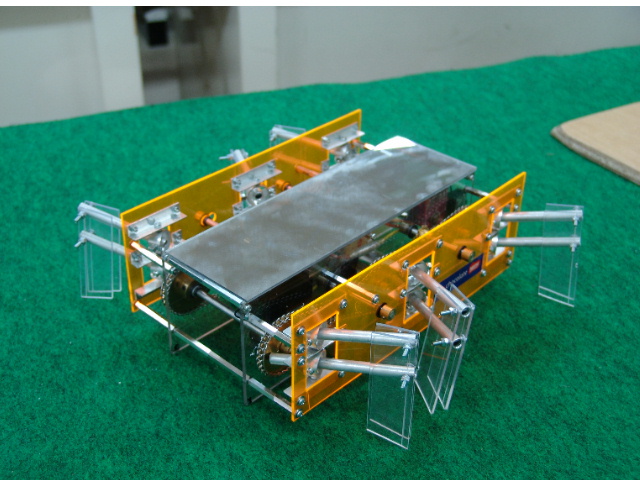 まずは、アクリルボディーの6足歩行ロボットです。