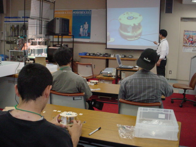 ロボット科のオープンキャンパスでは、授業の体験も出来ます。この日は、ロボット作りの雰囲気を味わってもらうために木製ロボットDR-01を作ってもらいました。