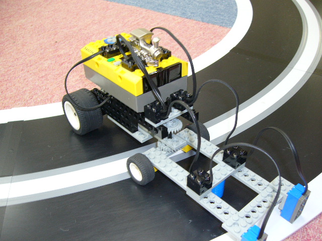 51ee1fac.JPG撮影用に、コース上に置いただけです。タイムは14.8で3位です。飾りに、何かのっていますね。 これは、ラインに応じてステアリングを切るタイプですね。