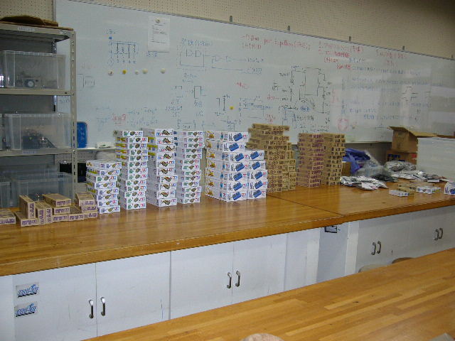 e7655031.JPG「ロボットコンテスト」です。とにかく、ロボコンやってみよう!と言うわけで学内での競技会を開催します。写真は、1年生の実習の様子です。ご覧の通り、部品はたくさんありまして、一通りみんなに行き渡ったら自由に使ってもらいます。