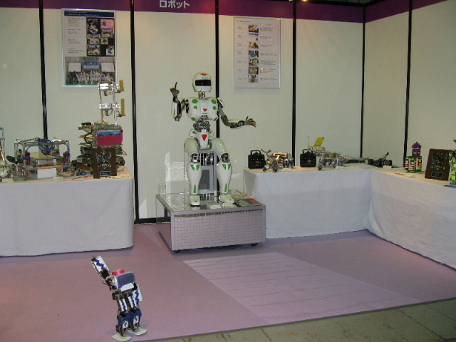 ce9adfdb.JPG全国専門学校ロボット競技会、二足歩行ロボット部門で準優勝したロボット「ヤンヤン」です(写真手前で手をあげている小さなロボット)。