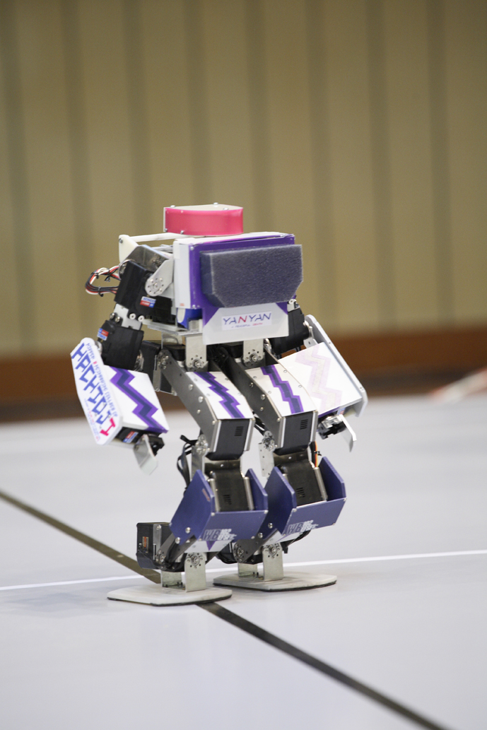 実はこのロボットも「NEEC-15」と同じで「第15回全国専門学校ロボット競技会 2足歩行ロボット競技」で準優勝したロボットなんです。この写真は準優勝して喜んでいるときの写真でした優勝出来なかったのが残念なんですが・・・。でも優勝したのはやっぱり我がロボット科の学生チームなんです