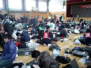 控え室は避難所状態です。選手でいっぱいですね。