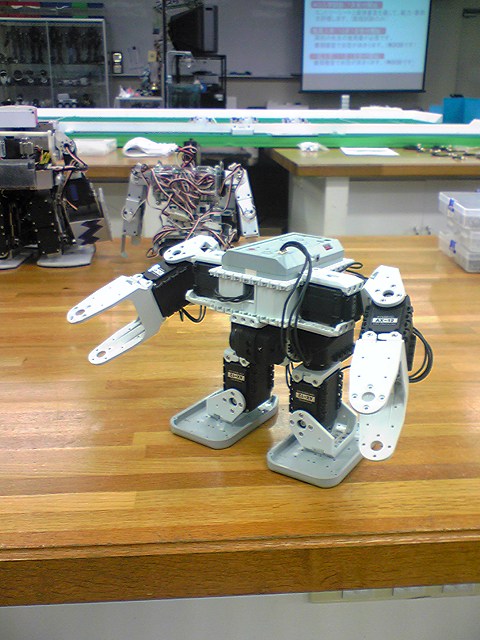 今日は完全予約制の体験入学が行われています(^0^)/ロボット科では写真のような二足歩行ロボットを1日かけて作ります!