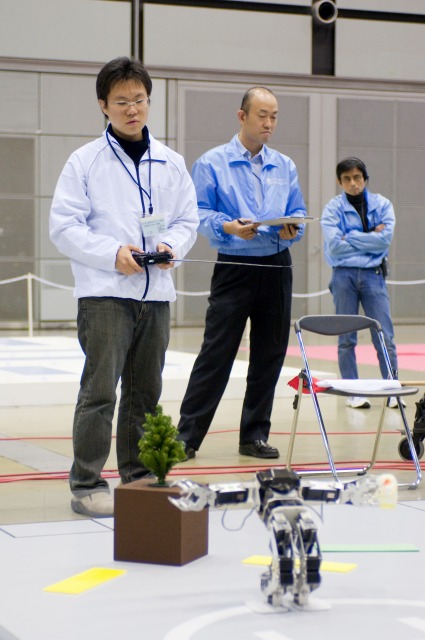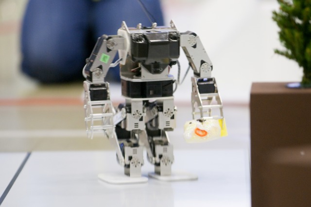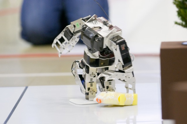 二足歩行ロボット競技の「躍進」です。ロボット科2年生の前田くんはKONDO CUPでも何度も登場していますね。