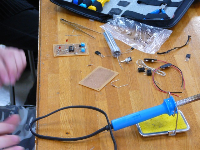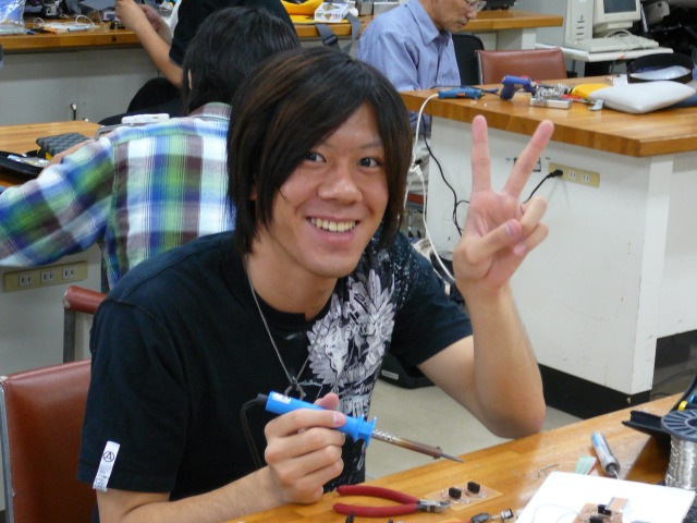 ですが、中に組み込まれている電子回路も自分たちで作りました。慣れない半田付け作業で手こずった人もいたようですが、何とか終わってよかったです。