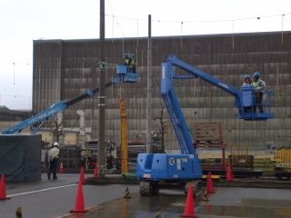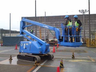 写真のような、高所作業車の操縦の練習を勉強しています。