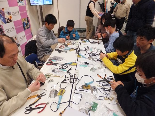 同じ場所で、もう1つの体験教室「昆虫型ロボットを作ろう」をやっているところです。
