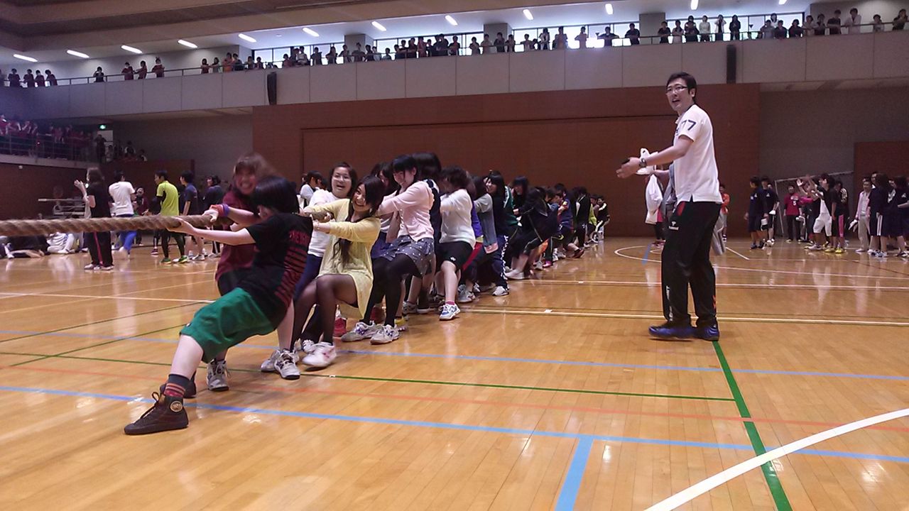本日、体育祭実施中です。カレッジ対抗綱引きが行われています。テクノロジーカレッジチームは、Bチームは負けてしまいました。残念