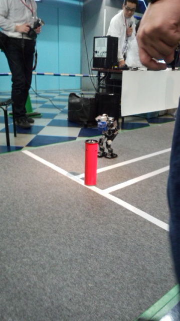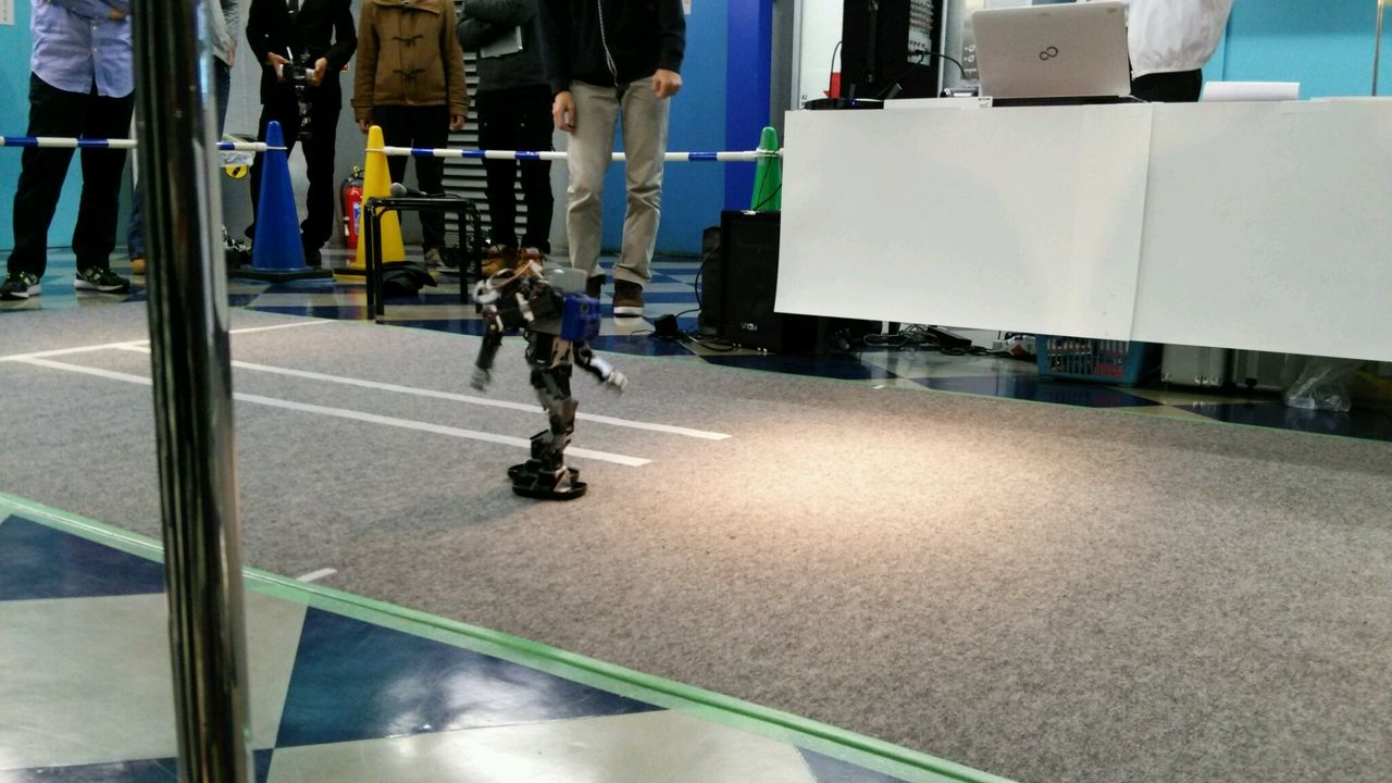 全国専門学校ロボット競技会で優勝したチーム、武田君と伊藤君の二人で、2足歩行クラスに出場しています。