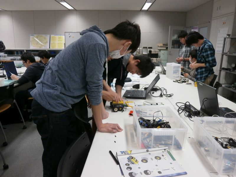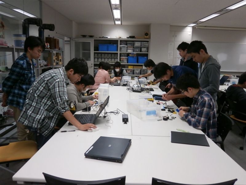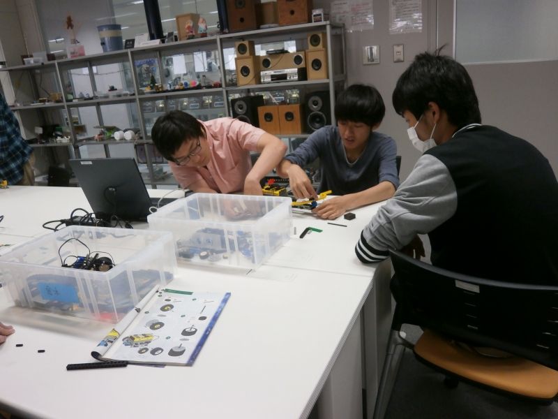ブロックのおもちゃでおなじみのレゴ社が販売している、レゴマインドストームという教材を使った実習を行っています。