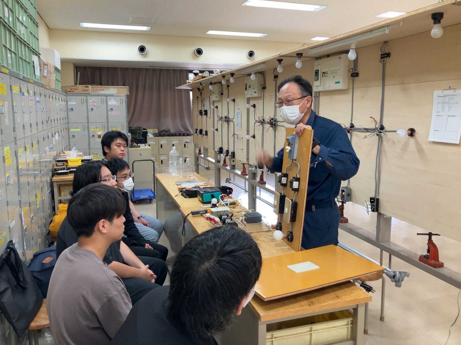 ロボット科の学生は、自身の安全と健康の確保、そして電気工事の欠陥による災害を防止するため、真剣に取り組んでいます。(石)