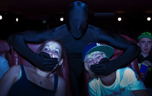 今回の企画をしたのはロンドンにあるプリンス・チャールズ・シネマ。会場の背後に目立たないよう黒い服を着た「インビジブル・シネマ・ニンジャ」が上映中控えており、マナー違反の人を見つけたら対応するとのことです。彼らはモーフ・スーツという衣装を着用しており、一般の人からは目障りにならないようになっています。