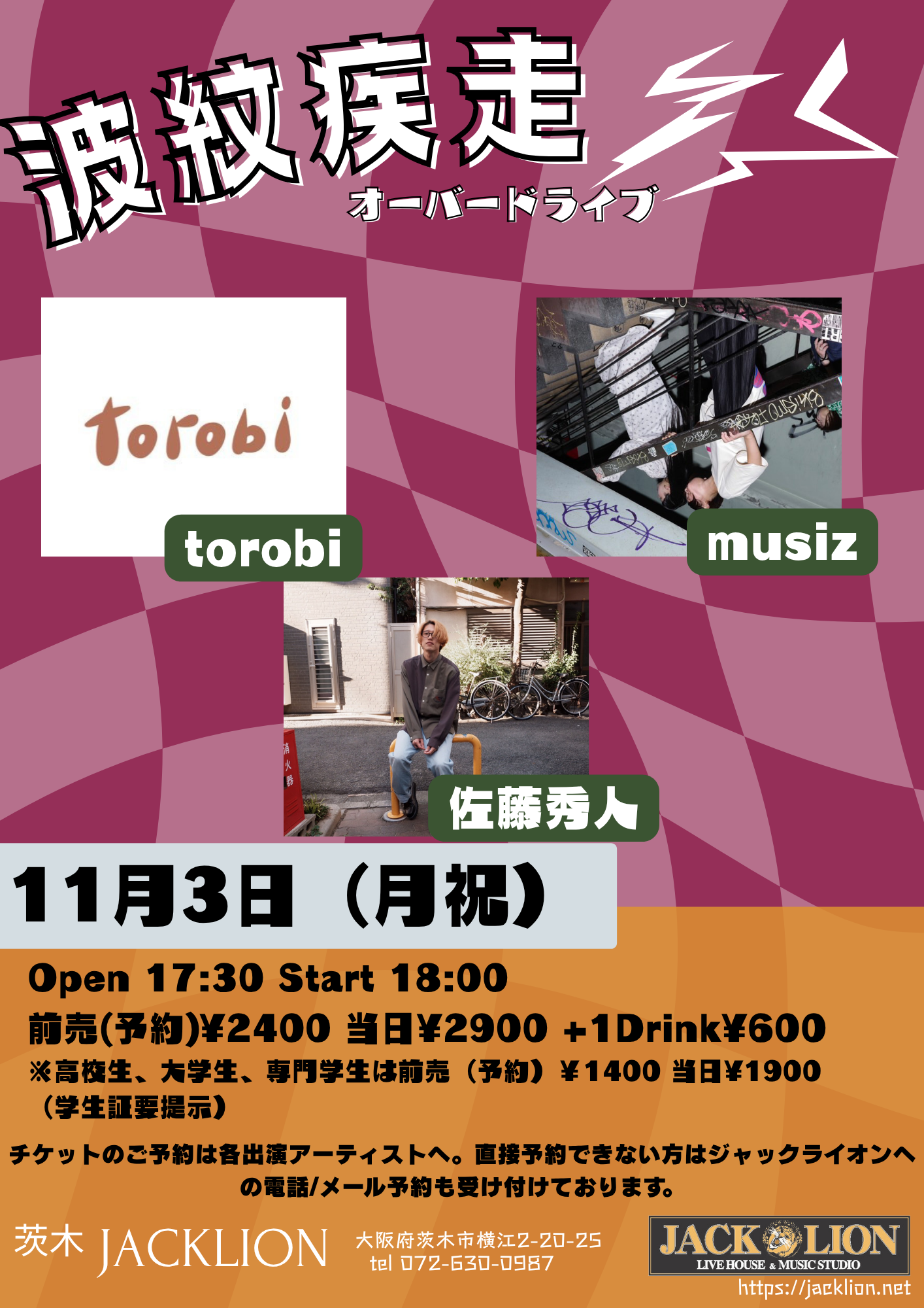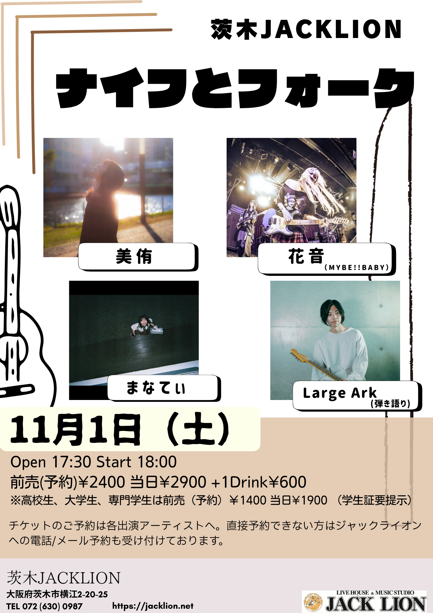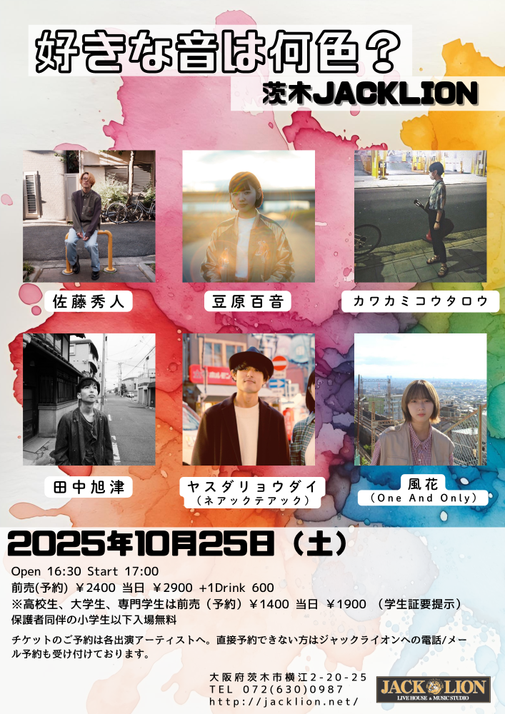 ■しかくこのライブのチケットは各出演者への取り置き予約で受け付けております。直接連絡が不可能な方は、ジャックライオンへのお電話