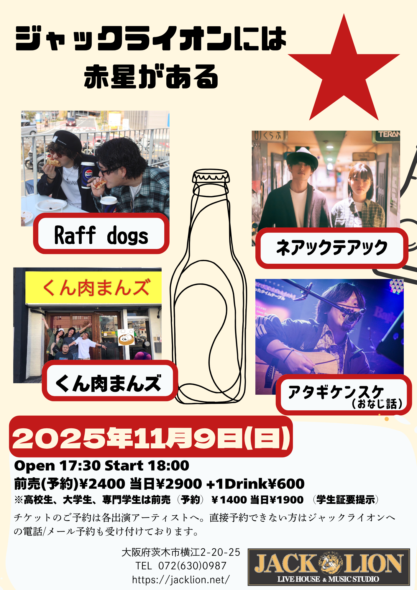 ■しかくご入場順は開場時ジャックライオンメール予約の方優先⇒バンド取り置き 開場後はご来店順です。